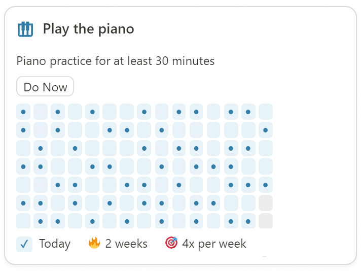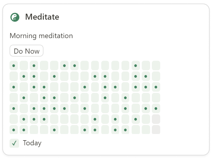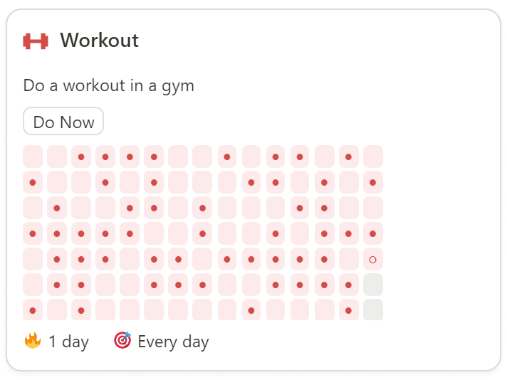 Tracking makes you more mindful of your habits. You're less likely to forget or let days slip by unnoticed.